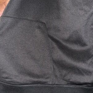 Pockets: Zipper pockets (faux suede side); kangaroo pockets (scuba-textured side)