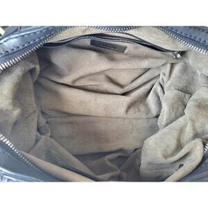 Made in Italy, Joy Gryson SKYE Handbag Tote Convertible Black Leather Trim over Nylon outer shell. Interior is suede. Use snapped as a handbag, unsnapped as a larger tote bag. Bag ID charm is intact. Shoulder strap is missing as is one buckle, priced accordingly, see photos for details. Comes to you insured, from a smoke and pet free home.