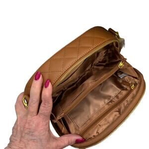 Joy & Iman Brown Quilted Leather Crossbody Double Sided Adjustable Straps Boho