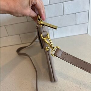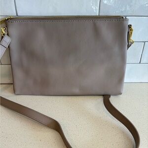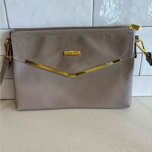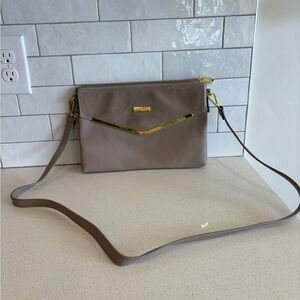 Joy & Iman Taupe Leather Clutch Bag with Shoulder Strap Grey