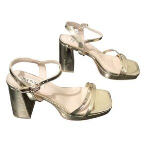 Joy In Love Size 7.5 Sandals Gold Patent Ankle Strap Chunky Block Heel Shoe