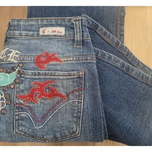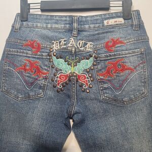 Joy Jean. Embroidered "Peace" on back. size 5. Flare/boot. 34" inseam. 7.5" rise.Excellent Like-New Condition