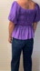 Chic purple blouse with puff sleeves. Smocked detailing adds texture. Ideal for versatile styling.