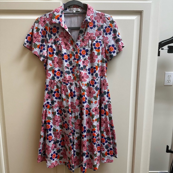 Pretty little multicolor cotton dress from Joy Joy with functional buttons, lined and has pockets!