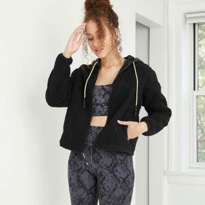 Joy Lab Black Sherpa Fleece Full Zip Hooded Jacket w/Hat XS