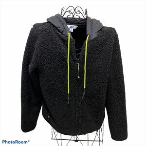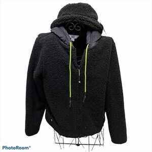 Joy Lab Black Sherpa Full Zip Hooded Jacket w/Hat