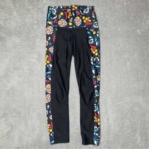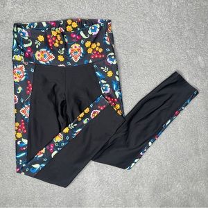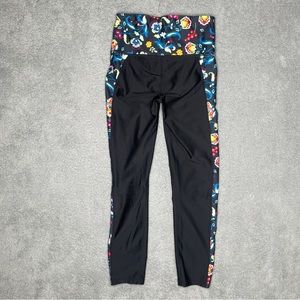 Joy Lab Leggings Womens XS Black Floral Cropped Yoga Pants Activewear