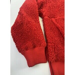Joy Lab Red Sherpa Fleece Half Zip Pullover Cropped Pouch Pocket Plush Medium.
