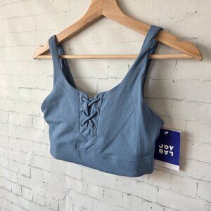 Joy Lab Sports Bra Size XS Blue Cross Front Detail Ribbed Wide Strap NEW. Brand new with tags, no flaws.