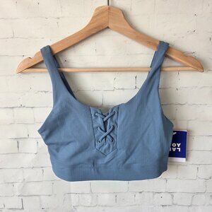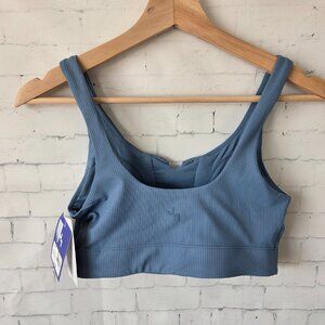 Joy Lab Sports Bra Size XS Blue Cross Front Detail Ribbed Wide Strap NEW