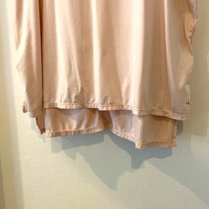 Target Joy Lab workout thank. Light pink, soft material. Longer in the back and able to tie on the side to style.