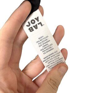 A black and blue sports bra with criss cross straps and removable pads. Labeled a women's size small.