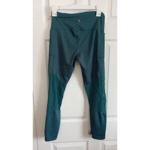 Joy Lab teal mess side full length mid rise leggings. Good condition. Slight wear on back side logo shown in photos. Size Medium. Polyester Spandex Blend