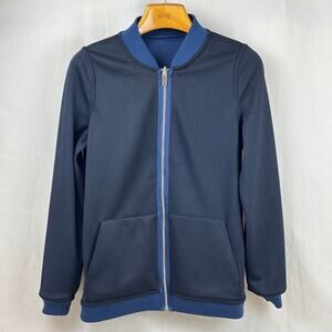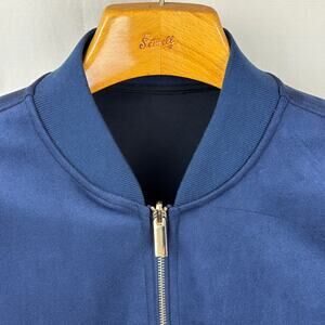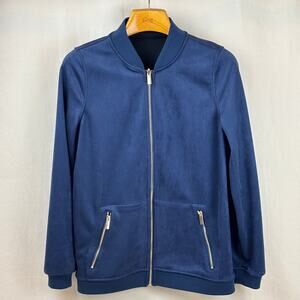 Joy Mangano CleanBoss Faux Suede Reversible Bomber Jacket Navy & Black Sz Small