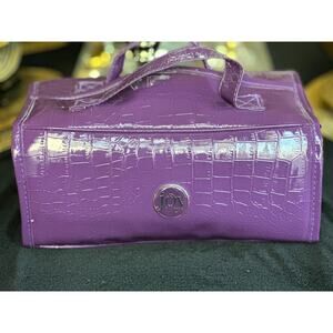 Joy Mangano Purple Croc Better Beauty Cosmetic Makeup Roll Up Travel Bag Case