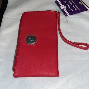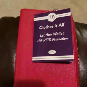 This wallet has a wraparound zipper, two oversized money slots, 16 credit card slots, one internal zipper pocket, a wristlet strap and RFID protection. 5x8 inches