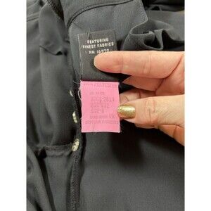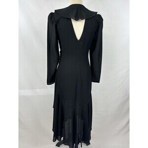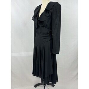 Joy Stevens California Wrap Dress Black 6 Sheer Ruffles Cut Out Long Sleeve