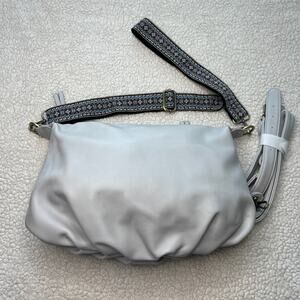 Joy Susan Light Gray Hobo Slouch Bag. Preowned and in good condition. Two open pockets and zipper on inside. One zipper pocket on outside. See mark on outside of bag in pictures. Comes with both straps. Please see all photos. Approx measurements in pictures.