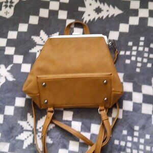 Joy Susan Phyllis Vegan Leather Nu uck Frame Crossbody Backpack Handbag. Outside zipper pocket. Vintage snap closure. 1 zipper pocket inside & 1 open pocket inside. 2 flaws on the bottom. See photos above. 22"-25" Crossbody straps. Backpack 16"-18" straps. 10.5" x 9" x 4" deep. Questions and offers welcome.