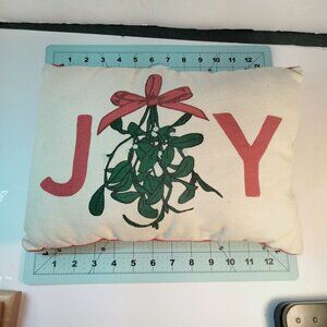 Joy Throw Pillow Cushion Mistletoe Holiday Christmas 14 x 10 Red Green