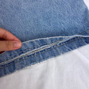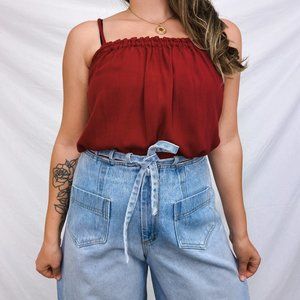 My favorite piece of this drop, this flared light blue jeans feature front pockets, a zipper, bare back and a belt that goes around the whole waist.