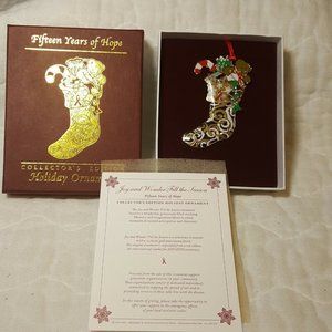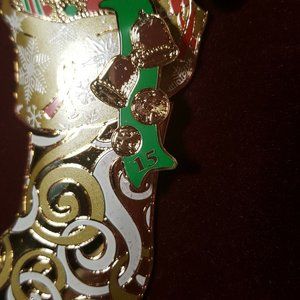 Joy and Wonder of the Season Xmas Stocking 3D Ornament Brass 24K Gold n Enamel