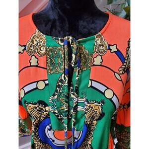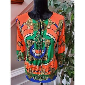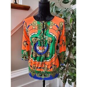 Joy*Joy Women's Multicolor Polyester Round Neck Long Sleeve Casual Blouse Size M.