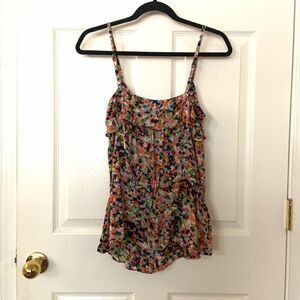 In excellent condition Cute orange buttons in front for added detail Elastic waist Ruffle detail Adjustable straps