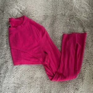 Bright pink ribbed sweatshirt by JoyLab shrug