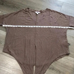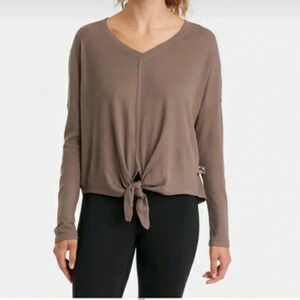 JoyLab Athletic Waffle Knit Tie Front Brown Long Sleeve Top Womens Size Medium
