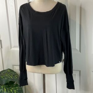 JoyLab Black Boxy Fit Cotton Cropped Long Sleeve Thumbholes Shirt Size L