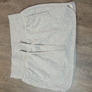 Stylish light gray skirt with adjustable drawstring and thick waistband. Ideal for everyday comfort.