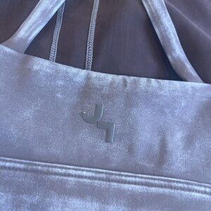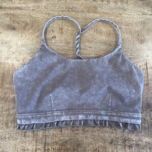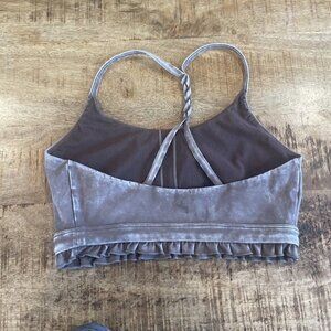 The bra is made of velour fabric, ensuring maximum comfort while you exercise. Its twist back design adds a trendy touch, making it a great addition to your wardrobe. This sports bra is pre-owned but still in great condition, perfect for those on the lookout for affordable and fashionable activewear.