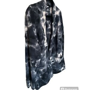 JoyLab French Terry Black White Tie Dye Open Cardigan Medium 100% Cotton Comfort