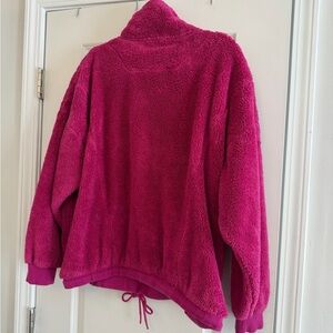 Cozy fuchsia pullover jacket. Features a half-zip front. Soft and warm material. Perfect for casual wear.