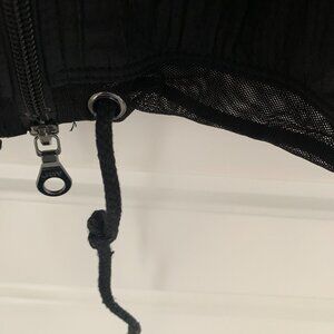 Boxy Raglan Softshell Relaxed Jacket from Target brand JoyLab. Size small. There is breathable mesh underneath the back flap as shown in video. End of one drawstring around waist has come off, so it is knotted as shown in pictures to keep string from going back in. Otherwise great condition. Any questions please ask!