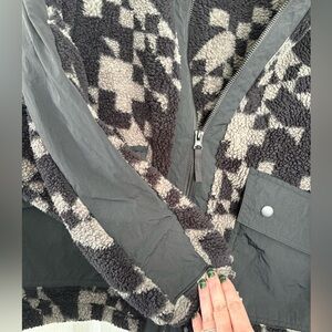 Fleece and nylon coat cute for the gym or activities. Light weight and in great condition