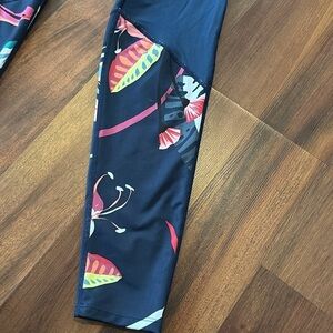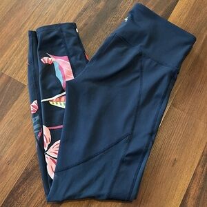 JoyLab Navy Hawaiian Floral Mesh Leggings Size Small
