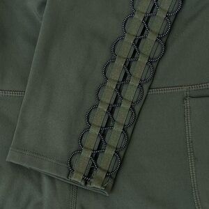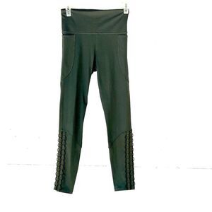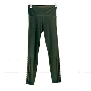 Step your game up a notch with these Olive green leggings from Joy Lab. These leggings are certain to get noticed with their high waist two pocket design and the intricate detail down each leg of the pants.