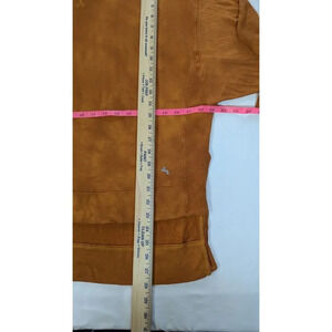 See pictures for measurements and exact condition of top. There is one small stain on the back of a sleeve. It is pictured. I did not try to get it out. It may come out with laundering.
