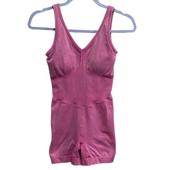 JoyLab Pink Seamless Ribbed Activewear Romper XS One Piece Yoga Short Jumpsuit