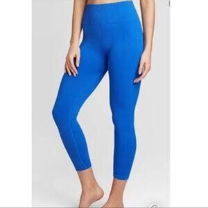 JoyLab Seamless High Waist Royal Blue Ribbed Full Length Leggings Size M EUC