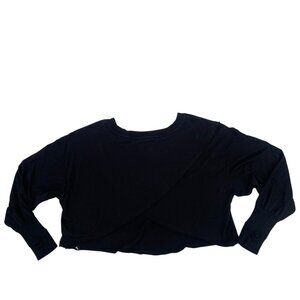JoyLab SizeX XL Black Long Sleeve Boxy Fit Tee Open Back Frayed Hem Thumbholes
