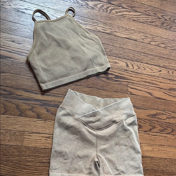 Comfortable tan ribbed shorts set. Perfect for casual wear or working out Size S/M