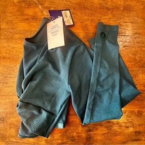 Athletic teal top with twist front. Perfect for working out- wear your tank or sports bra underneath but stay cool. New with tags.