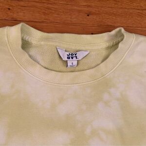 JoyLab lime green/yellow/white tie dye crewneck zipper sweatshirt. Armpit to armpit 19 inches. Length 22 1/2 inches. 95% cotton, 5% polyester. Size small. Good condition.