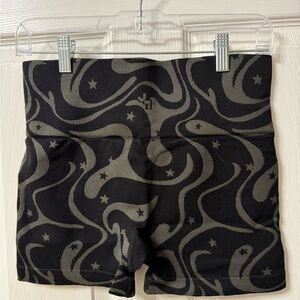 Stylish black and gray shorts with a unique pattern. Perfect for casual wear.