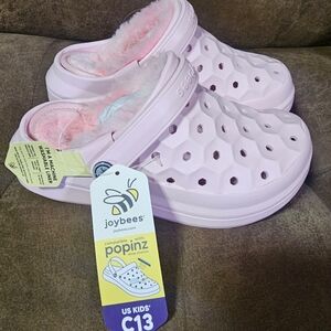 These Joybees kids slippers in light pink offer cozy comfort with a soft fuzzy lining. Perfect for keeping little feet warm and stylish.