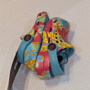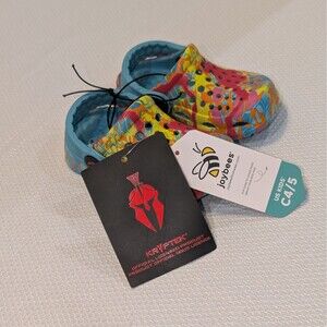 The Joybees Kids Size C4/5 sandal have a graphic and metallic finish that inspire a fun day on the go. Independent kids who go everywhere and get into everything chose the Active Clog for every activity. They're durable, comfortable, ans a quick clean after a long day of play.