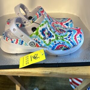 Joybees clogs new tags size 3. Cute psychedelic pattern.